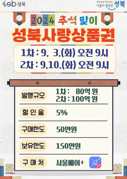 ▲ 성북사랑상품권 총 10% 할인! 추석맞이 페이백으로 혜택 풍성하게
