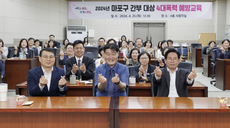 ▲ 2024년 마포구 간부대상 4대폭력 예방교육에 참석한 박강수 마포구청장(첫줄 오른쪽) |