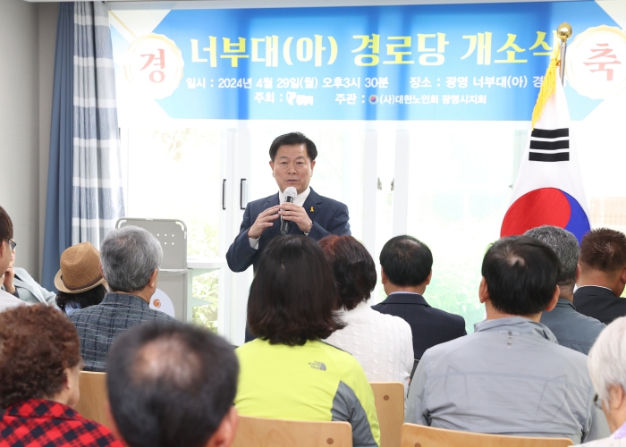 박승원 광명시장은 “너부대아파트 경로당의 개소를 축하드리며, 이해와 존중을 바탕으로 한 아름다운 경로당이 되길 기원한다”며 “어르신들의 행복한 노년을 위해 더 많은 경로당을 조성하도록 지속적인 관심과 지원을 아끼지 않겠다”고 밝혔다.