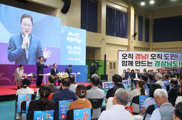 [뉴스서치] 경상남도는 22일 거창군 다목적체육관에서 ‘도민 상생토크’를 열고, 지역 현안과 정책 방안에 대해 자유롭게 의견을 나눴다.