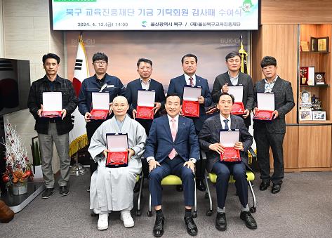 [뉴스서치] 울산 북구교육진흥재단은 12일 북구청장실에서 2023년 재단에 장학금을 기탁한 기부자에게 감사패를 전달했다.