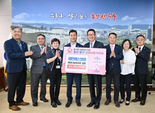 ▲ 세민에스요양병원 청남나눔봉사회, 중구에 고향사랑기부금 320만 원 기탁 |