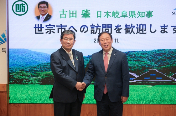 [뉴스서치] 최민호 세종특별자치시장이 11일 시청 세종실에서 후루타 하지메(古田 肇) 기후현 지사와의 첫 공식 면담을 통해 양 도시 간 협력을 다졌다.