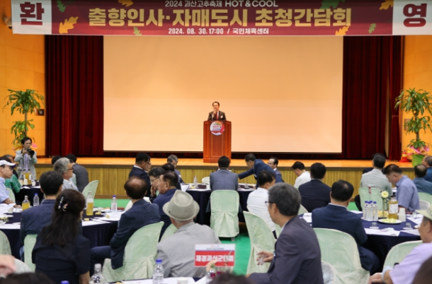 [뉴스서치] 충북 괴산군은 2024괴산고추축제 2일 차인 30일 괴산국민체육센터에서 출향인사·자매결연도시 초청간담회를 개최했다.