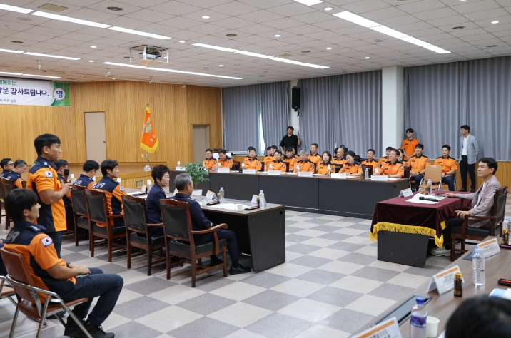 이에 대해 김 지사는 “도민의 안전을 위해 밤낮없이 현장에서 활동하시는 여러분 얼굴을 직접 보게되니 더욱 믿음직스럽다”며, “출동간식비 건은 저도 예전부터 관심을 가지고 있었고 작년에는 27년 만에 4천 원으로 인상시키기도 했다”고 말했다.