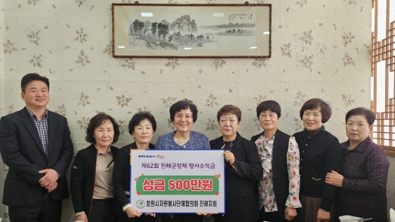 김은자 진해구청장은 “매년 힘들게 마련한 진해군항제 먹거리 장터 운영 수익금을 흔쾌히 기탁 해주시고 각종 봉사 활동에도 적극 참여해 주셔서 진심으로 감사드리며, 소중한 성금은 꼭 필요한 분들에게 잘 전달하겠다”고 말했다.