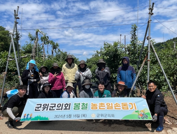 [뉴스서치] 군위군의회 박수현 의장과 의회사무과 직원들이 지난 16일 우보면의 과수 농가를 찾아 열매솎기(적과작업)를 실시했다.