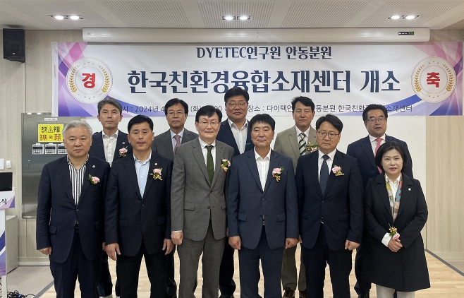 [뉴스서치] 섬유산업 전문 생산기술연구소인 다이텍연구원은 4월 30일 경북바이오2차 일반산단에서 ‘한국친환경융합소재센터’ 개소식을 개최했다.
