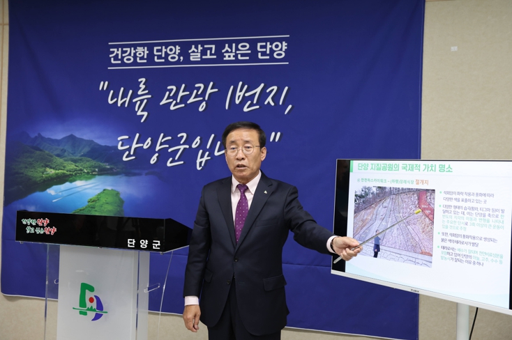 또 “지질학적 가치가 높은 단양군 전체를 유네스코 세계지질공원으로 지정받아 세계속 단양 고유브랜드를 창출하겠다”며 “이는 단양이 문화·관광·고고·생태·경관 등을 결합한 국제적 관광지로 가는 첫 단추”라고 강조했다.