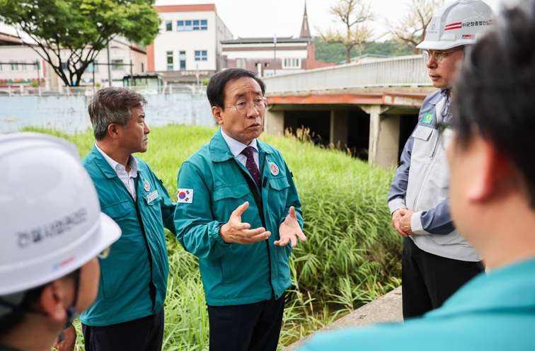 김 군수는 장림지구, 평동지구 풍수해생활권 종합정비사업지와 매포읍 용장교를 찾아 현장을 둘러보고 현장 모의 훈련에 참여했다.