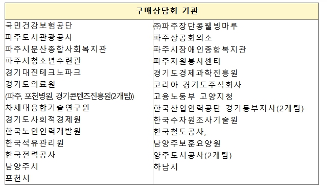 구매상담회는 사회적경제기업과 공공기관·자치단체의 구매 담당자를 1:1로 연계하여 구매가 이루어지도록 진행된다. 이날 경기북부 12개 시군, 국민건강보험공단, 한국철도공사, 한국산업인력공단, 한국전력공사 등 31개 기관과 80개 기업이 연계되어 총 148여 건의 상담이 이루어진다. 이와 더불어, 사회적기업 제품 공공구매 제도에 대한 전반적인 이해를 돕는 공공구매 교육과 사회적경제기업 상품들을 직접 볼 수 있는 상품전시회도 함께 진행된다.