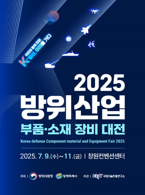 [뉴스서치] 방위사업청은 제1회'방위산업의 날'주간의 일환으로 부품국산화 활성화와 중소‧벤처기업 판로개척을 위한 ‘2025 방위산업 부품·소재 장비대전’(K-CEF 2025)을 7월 9일부터 11일까지 창원컨벤션센터에서 개최한다. 이번 행사는 방위사업청과 창원특례시가 주최하고 국방기술진흥연구소가 주관하며, 한화, LIG넥스원, KAI 등 13개 체계기업과 120여 개의 중소기업이 참가한다.