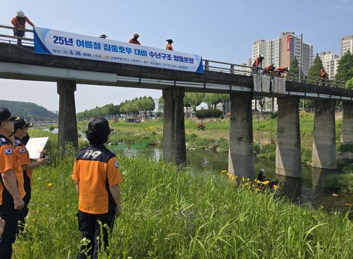 이번 훈련은 여름철을 앞두고 집중호우로 인한 하천 범람과 다수 인명사고 발생을 가정한 현장감 있는 시나리오를 바탕으로, 구조대원의 현장 대응 능력과 유관 부서 간 공조 체계를 사전에 점검하기 위해 실시됐다.