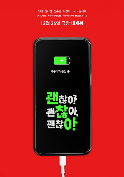 이번에 공개된 티저 포스터는 충전 중인 핸드폰 위로 뜨는 ‘괜찮아 괜찮아 괜찮아’ 제목이 눈길을 사로잡는다.