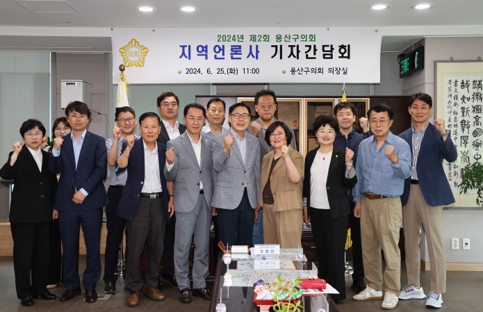 [뉴스서치] 용산구의회는 6월 25일 의장실에서 지역 언론사 간부 및 기자들을 대상으로 제9대 용산구의회 전반기 의정활동 성과를 돌아보고 후반기 의회와 언론의 유대관계 강화 방안에 대한 논의를 하기 위해 기자 간담회를 가졌다.