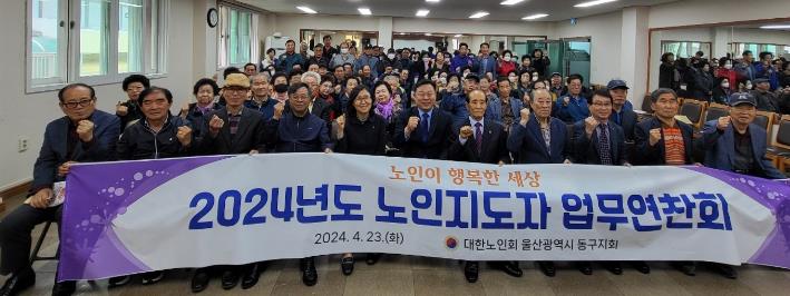 [뉴스서치] 대한노인회 울산 동구지회는 4월 23일 동구노인회관에서 김종훈 동구청장과 경로당 회장 및 총무, 지회 임원 등 90여명이 참석한 가운데 2024년도 노인지도자 업무연찬회를 가졌다.
