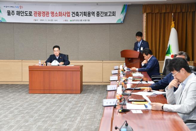 [뉴스서치] 울산시 울주군이 24일 군청 비둘기홀에서 이순걸 울주군수를 비롯해 군의원, 외부전문가, 관계 공무원 등이 참석한 가운데 ‘울주 해안도로 관광경관 명소화사업 건축기획용역’ 중간보고회를 개최했다.