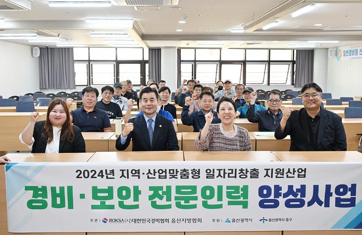 [뉴스서치] 울산 중구와 (사)대한민국경비협회 울산지방협회가 취업을 희망하는 주민 20명을 대상으로 ‘지역·산업맞춤형 일자리창출 지원사업’의 일환으로 ‘경비·보안 전문인력 양성사업’ 1차 교육을 진행한다.