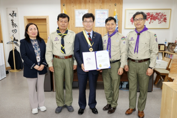 [뉴스서치] 윤건영 충청북도교육감이 23일 교육감 집무실에서 한국스카우트충북연맹으로부터 감사장을 전달 받았다.