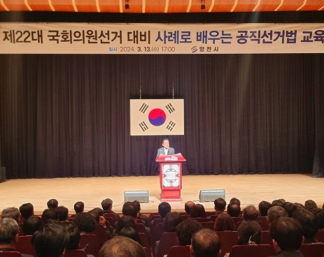 [뉴스서치] 영천시는 13일 시민회관에서 공직자 370여 명이 참석한 가운데 ‘제22대 국회의원 선거 대비 사례로 배우는 공직선거법 교육’을 실시했다.