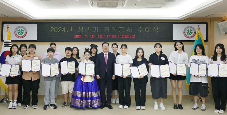 2024년 상반기 장학금 규모는 재능, 희망, 외국인유학생 장학금 등 3개 분야 총 372명에 2억 9,158만 원이다.