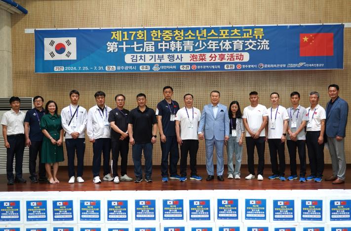 [뉴스서치] 제17회 한·중 청소년스포츠 교류대회에 참가하는 중국선수단 80여명과 허샤워붜 단장, 전갑수 체육회장은 광주광역시 김치타운을 방문하여 김치 체험행사에 참여했다.