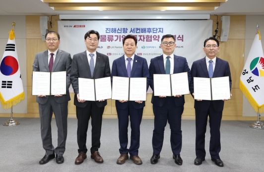 [뉴스서치] 경상남도는 22일 도청 도정회의실에서 글로벌 물류기업 ㈜엘엑스판토스신항에코물류센터, DP월드부산로지스틱스센터㈜와 진해신항 서컨 배후단지(1단계)에 스마트물류센터 설립 투자협약을 체결했다.