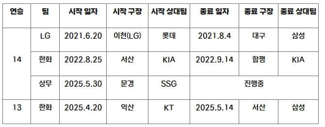 ▲ 역대 퓨처스리그 최다연승 기록(2010년 이후) |