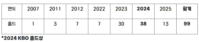 KBO는 노경은이 100홀드를 달성할 경우 표창 규정에 의거해 기념상을 수여할 예정이다.