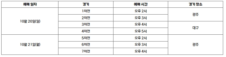 ▲ 한국시리즈 예매 시간 안내 표 |