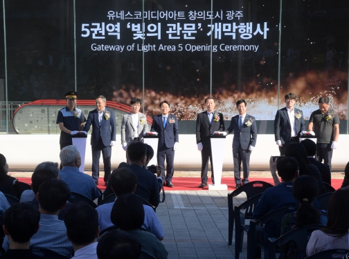 광주광역시는 30일 광주송정역 광장에서 강기정 시장과 박병규 광산구청장, 한국철도공사 등 관계기관, 콘텐츠 제작에 참여한 ㈜이지위드, 미디어아트 작가 등이 참석한 가운데 개막식을 가졌다.