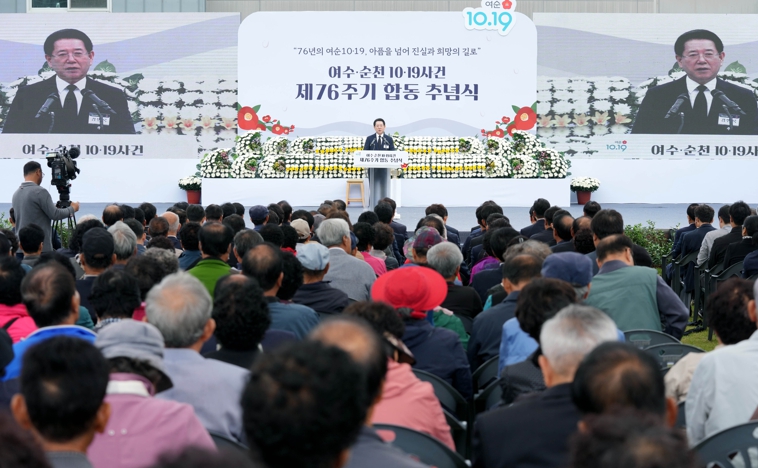 [뉴스서치] 전라남도는 여수·순천 10·19사건 76주기를 맞아 19일 보성 한국차문화공원 광장에서 희생자의 넋을 추모하고 유족의 아픔을 위로하는 합동추념식을 개최했다.