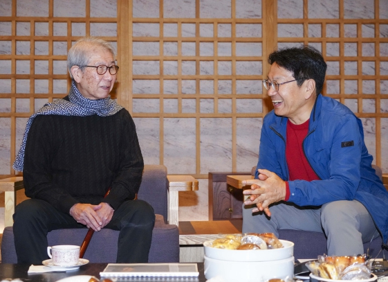 이날 환담은 일본 요코하마국립대 명예교수인 야마모토 리켄 건축가가 특별강연을 위해 광주를 찾으면서 이뤄졌다.