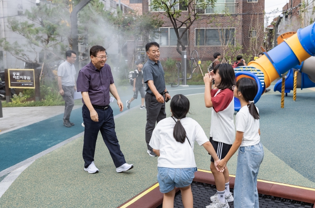 ▲ 중곡어린이공원에 조성된 창의놀이터에 방문한 김경호 광진구청장 |