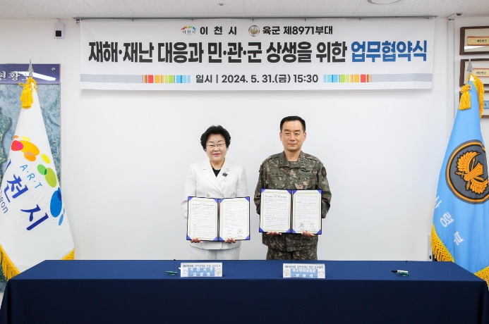 [뉴스서치] 이천시와 육군 제8971부대(부대장 양윤석)는 지난 5월 31일 재해·재난대응과 민·관·군 상생을 위한 업무협약을 체결했다.