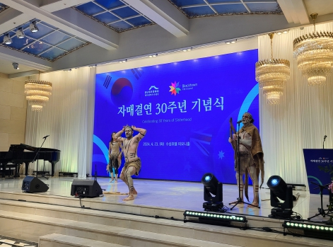 ▲ 23일 호텔수성에서 열린 대구 수성구와 호주 블랙타운시 자매결연 30주년 기념식에서 이뤄진 식전 행사 모습 |