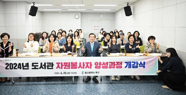 [뉴스서치] 울산 북구는 23일 중앙도서관에서 구립도서관과 작은도서관 자원봉사자가 참석한 가운데 도서관 자원봉사자 양성교육 개강식을 열었다.