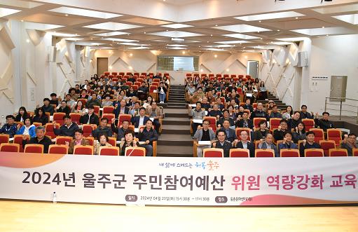 [뉴스서치] 울산시 울주군이 이달부터 오는 6월까지 주민참여예산위원회와 읍면 지역회의 및 주민자치회 위원, 일반주민 등을 대상으로 ‘2024년 주민참여예산학교’를 운영한다고 23일 밝혔다.