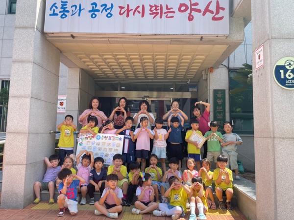 [뉴스서치] 지난 28일 웅상보건지소에 무지개유치원 하얀반 친구들이 깜짝 방문했다.