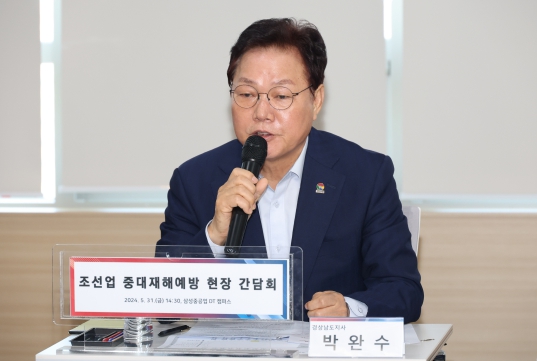 [뉴스서치] 박완수 경남도지사는 31일 오후 거제 삼성중공업 DT캠퍼스 회의실에서 잇따라 발생한 안전사고와 관련, 조선소 현장의 목소리를 듣고 유관기관과 함께 해결책을 마련하기 위해 ‘조선업 중대재해 예방 현장간담회’를 주재했다.