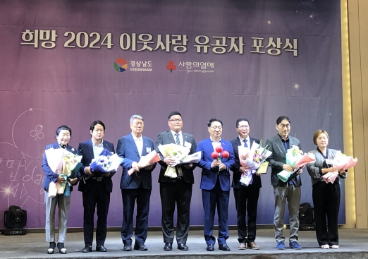 경남사회복지공동모금회 주관으로 열린 이번 ‘희망 2024 이웃사랑 유공자 포상식’에서 지속적으로 이웃사랑 나눔을 실천하며 지역사회에 공헌한 자에게 표창과 꽃다발을 전달하고 감사의 마음을 전했다.