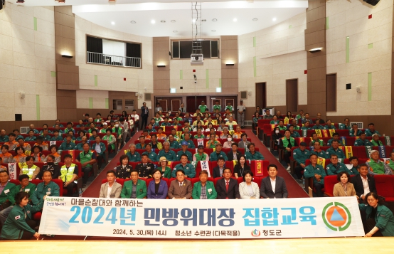 [뉴스서치] 청도군은 지난 30일, 청소년수련관 다목적홀에서 2024년도 지역민방위대장 집합교육을 실시했다.