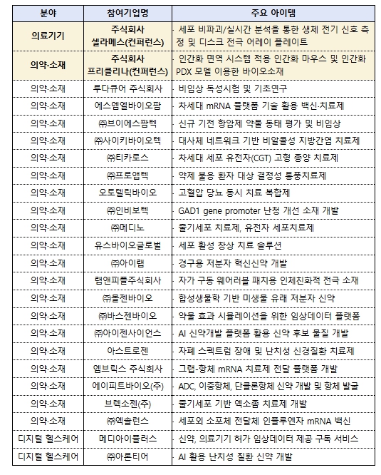 특히, 이번 행사에는 국내 최고 수준의 기술을 보유한 의약‧소재 분야 ㈜프리클리나와 의료기기 분야 ㈜셀라메스 등 바이오 초격차 스타트업 24개사가 참여하여, 글로벌 제약회사와 국내외 투자기관 등의 관심을 받았다.