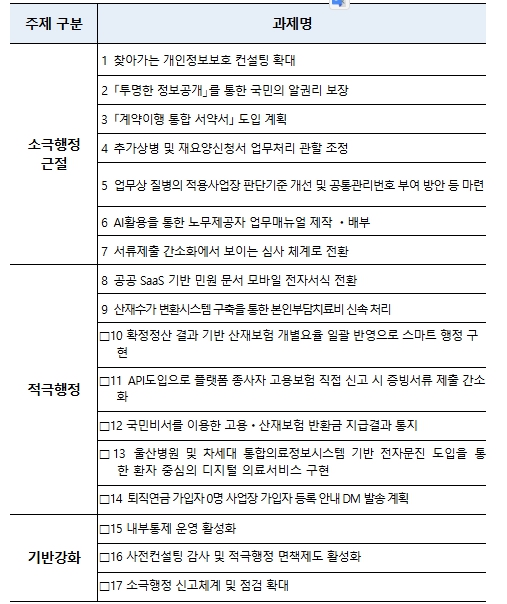 [뉴스서치] 근로복지공단(이사장 박종길)은'2026년 적극행정 실천과제'17건을 선정하고, 국민 불편 해소를 위한 현장 중심의 업무처리 절차 개선을 본격 추진한다고 밝혔다.