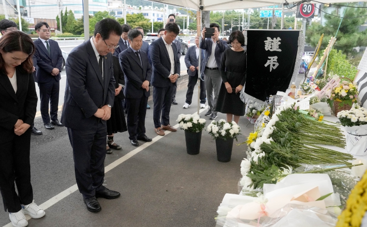▲ 김영록 전라남도지사가 1일 오후 순천 도심 길거리서 안타깝게 희생된 10대 학생의 추모 공간이 마련된 조례동 분향소를 찾아 고인의 넋을 기리고 있다. |