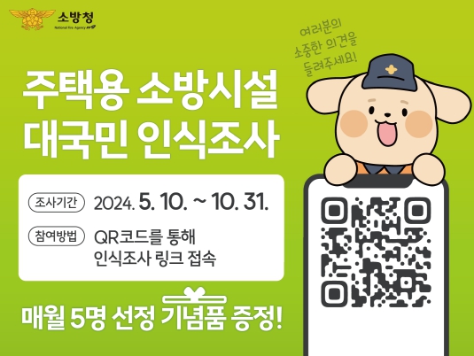 10월 31일까지 실시되는 ‘주택용 소방시설 대국민 인식 조사’는 주택용 소방시설 설치 확산을 위해 범국민적인 참여가 꼭 필요하다.