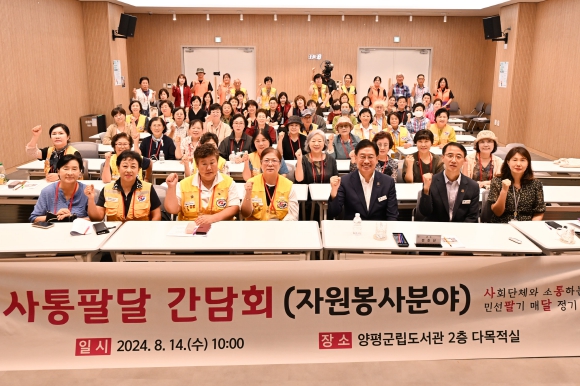 [뉴스서치] 전진선 양평군수가 14일 양평군립도서관 2층 다목적실에서 자원봉사 가입 단체 회원 70여명이 참석한 가운데 사통팔달 간담회를 진행했다.