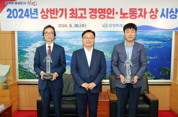 창원특례시는 26일 창원시청 접견실에서 창원경제를 빛낸 ‘2024년 상반기 최고 경영인·노동자 상’ 시상식을 개최했다.