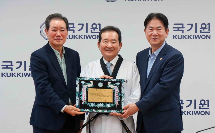 정 전 총리는 제46대 국무총리, 제20대 국회 전반기 국회의장, 국기원 명예이사장 등을 역임하고 태권도를 우리나라 국기(國技)로 지정, 국회의사당 광장에서 열린 월드기네스북 등재 행사, 국회 태권도장 설립, ‘국회의원 태권도연맹’ 창설 등을 주도해 태권도와 국기원 발전에 크게 기여했다.
