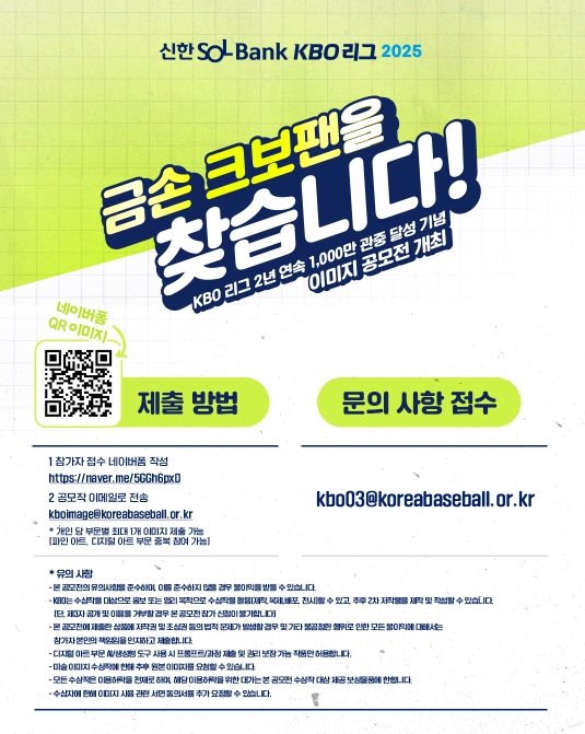 ▲ KBO 리그 2년 연속 1,000만 관중 달성 기념 이미지 공모전 개최 홍보 이미지 |